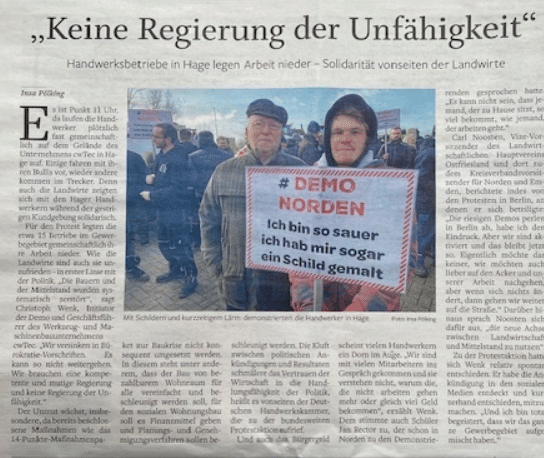 Wir sind ein Zusammenschluss von über 40 Unternehmerinnen und Unternehmern aus dem Raum Ostfriesland, die die existenzbedrohenden Umstände, die unsere Regierung kreiert, nicht mehr hinnehmen, sondern die Politik aktiv mitgestalten wollen. Dabei sind wir nicht GEGEN die Regierung, sondern FÜR eine vernünftige, verantwortungsbewusste und realitätsnahe Regierungspolitik.