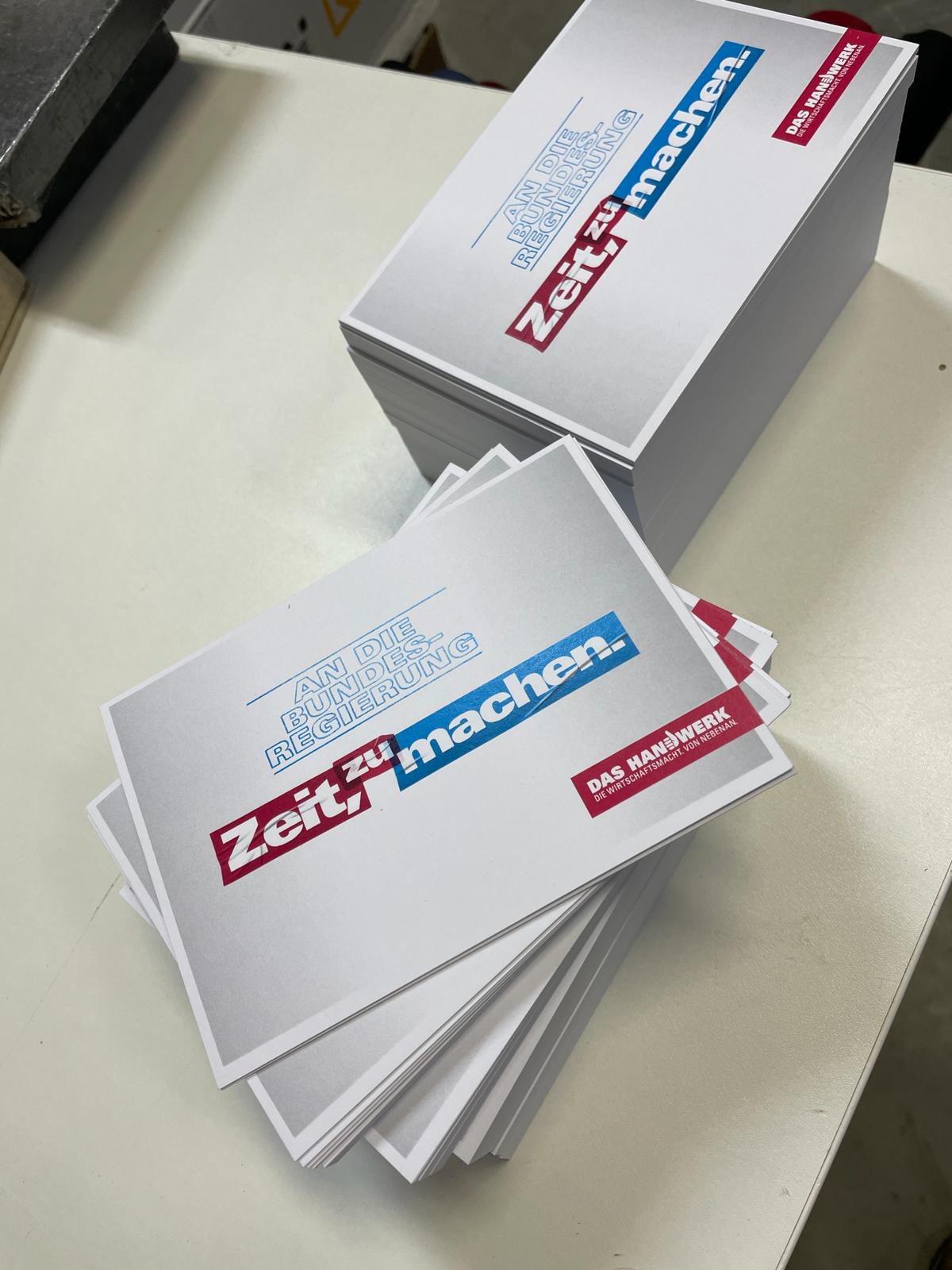 Wir haben unsere Belange auf Postkarten gedruckt und werden diese Politikern aus der Region mitgeben.
